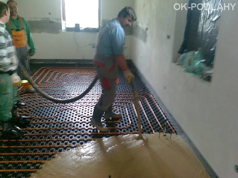 - Lití vyrovnávacích samonivelačních cementových stěrek.