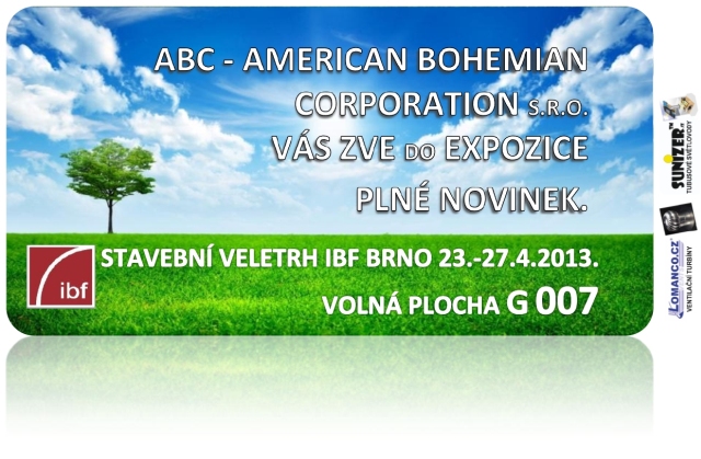 23.–27.4. 2013 v Brně. Společnost ABC, s.r.o. připravuje pro návštěvníky tohoto stavebního veletrhu venkovní expozici (stánek G 007), kde budou nainstalované světlovody přímo pod oblohou. Vybere si snad každý.