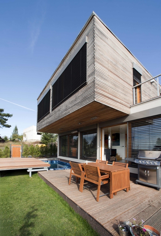 Nic nenahradí možnost projít si ve skutečnosti dům, o kterém uvažujete, vše si prohlédnout na vlastní oči a osahat… Vzorový dům je nízkoenergetická sendvičová dřevostavba, složená ze dvou odlišných staveb. Větší část zastavěné plochy zabírá typizovaný Bungalov 5+, který je vzhledem k užívání pro firemní účely dispozičně upravený. Do části bungalovu zasahuje zcela atypická patrová stavba „Kostka“ s pultovou střechou a s provětrávanou fasádou z modřínových prken. Najdete ho na adrese: Přemyšlenská 326, Zdiby – Brnky (u Prahy).