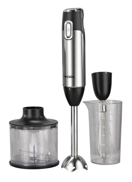 Tyčový mixér MORA MSP 603 X je rychlý, efektivní, velmi snadno ovladatelný, univerzální asistent. Má elegantní nerezový plášť, kvalitní nerezovou čepel a odnímatelnou nerezovou mixovací nohu, kterou lze snadno po každém použití umýt. Navíc je vybaven nerezovou šlehací metlou, plastovou nádobou 500 ml a sekacím nástavcem s nádobou 600 ml. Rozhodně se vyplatí mít jej po ruce nejen, když se rozhodnete připravit zdravý ovocný koktejl, ale také krémovou polévku, dětské kaše, džemy, pomazánky, krémy, na vitamíny bohaté smoothies či dřeně. S tyčovým mixérem MORA se to podaří jednoduše a rychle – pouhým stisknutím tlačítka. Výhodou je příjemně tichý provoz a možnost plynule regulovat výkon.