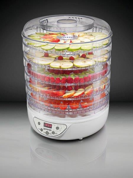 Jedním z nejstarších a nejjednodušších způsobů konzervace je sušení. Šetrnou dehydratací, odstraněním vody a vlhkosti, zůstává zachována výživová hodnota potravin, příjemně se koncentruje a zvýrazní chuť, zmenší se velikost i váha každého kousku, takže skladování je nenáročné na prostor i spotřebu energie. Není zapotřebí chladnička, mrazák, ani skříň na uložení zavařenin. Výkonná sušička potravin gorenje FKD 24 DW je vybavena pěti velkými (v průměru 31 cm) demontovatelnými, výškově nastavitelnými zásobníky, takže nabízí spoustu prostoru na sušení ovoce, zeleniny či masa, a to i větších kousků či silných plátků! Jednoduše ovladatelný digitální časovač s LED displejem lze nastavit na 30 min. až 19 hod. a 30 min., rozsah použitelných teplot je 35 ℃ až 70 ℃.