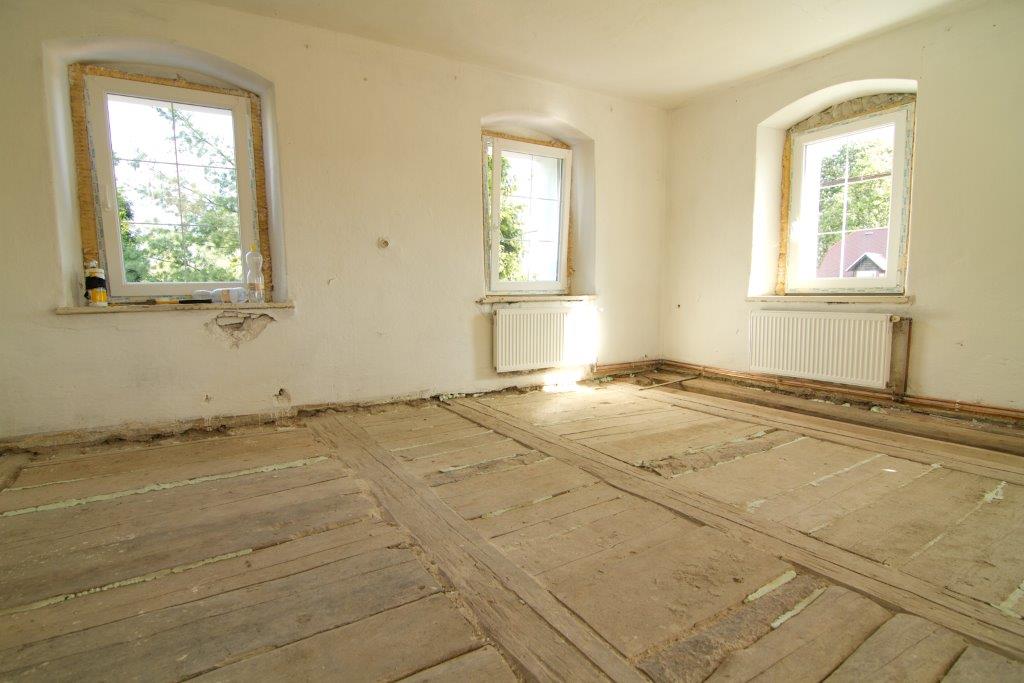 1.) Nejprve je nutné odstranit starou podlahu včetně starého násypu a podklad důkladně očistit.