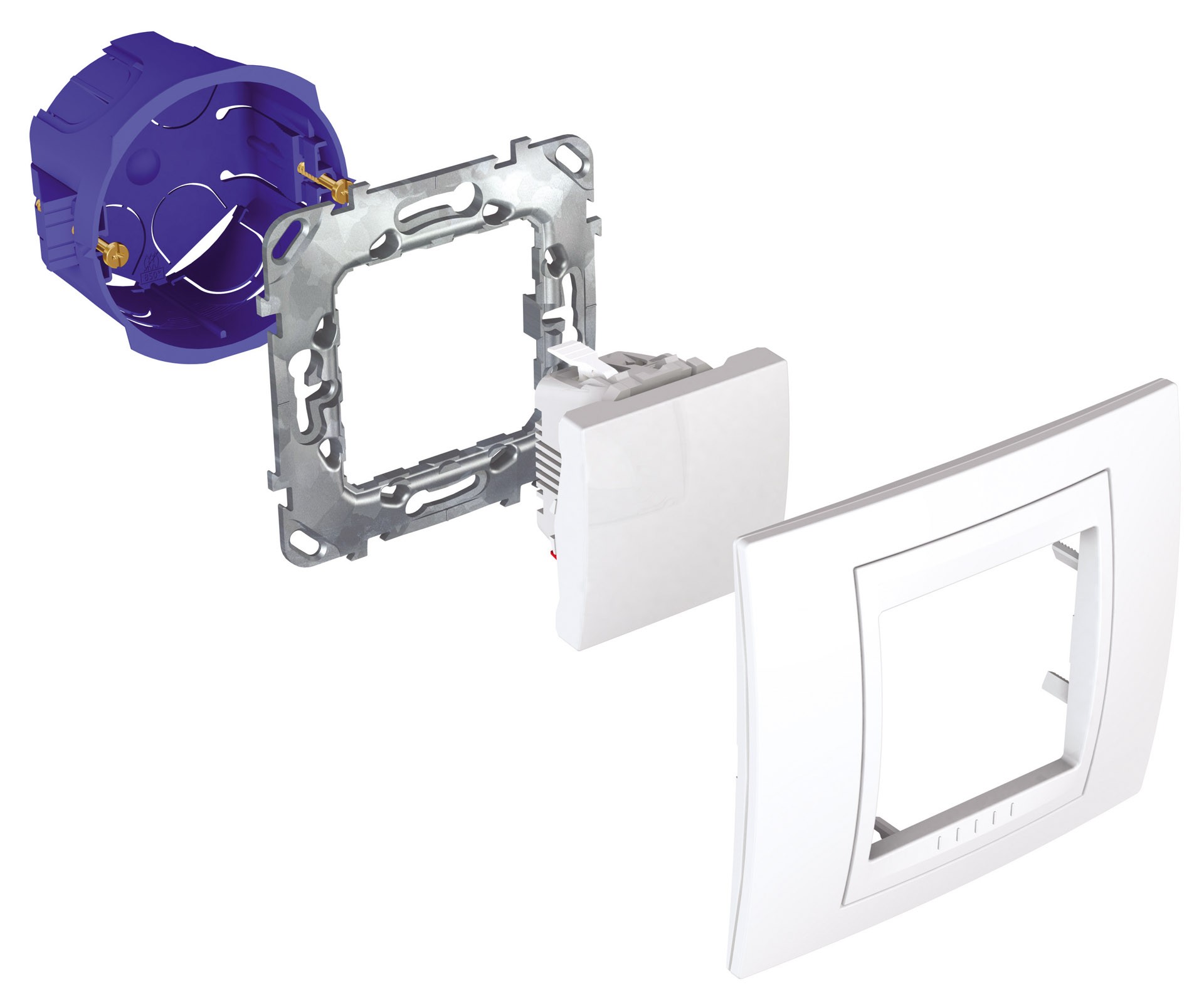 Řada Unica má další výhodu. Během stavby potřebujete nechat udělat elektroinstalaci, ale nechcete si ještě závazně vybírat design vypínačů, protože nevíte jaké budou interiéry. Tak se rozhodnete později. Elektrikář namontuje vypínače bez krycích rámečků, všechno funguje a je bezpečné. A vy si pak za čas vyberete rámečky – barevné, plastové, kovové, dřevěné, ze skla, z kůže nebo z břidlice. Unica je modulární a všechno vzájemně pasuje, na jakýkoliv přístroj kterýkoliv rámeček. Rámečky si nasadíte již sami bez elektrikáře i nářadí a za pár sekund.