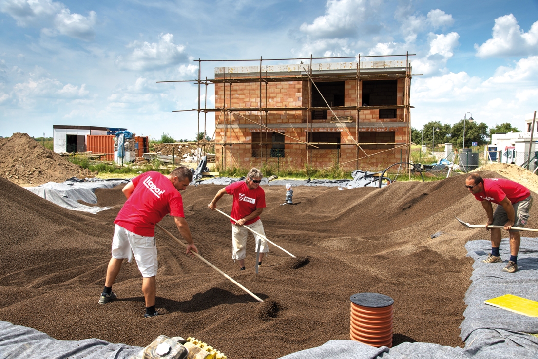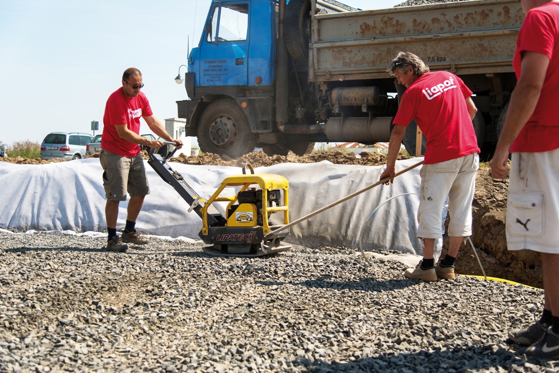 - Navrhne se a provede potřebná vrstva tepelně izolačního zásypu kamenivem Liapor. Dodávka Liaporu na stavbu se realizuje velkokapacitními sklápěči.
