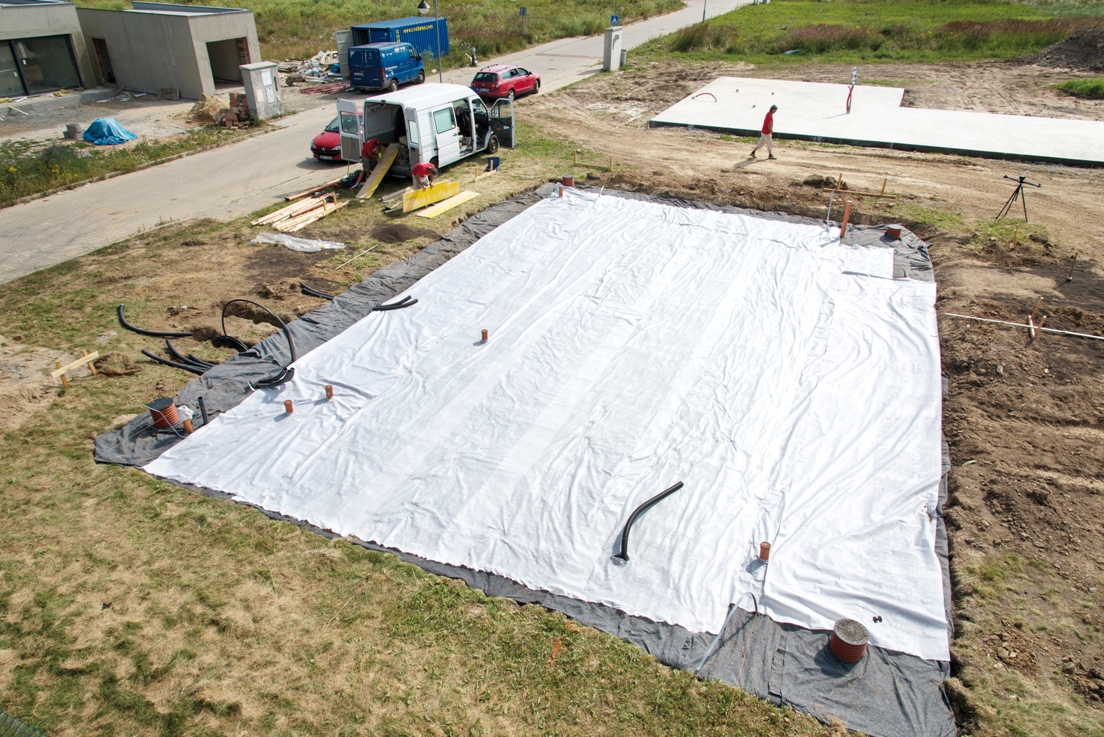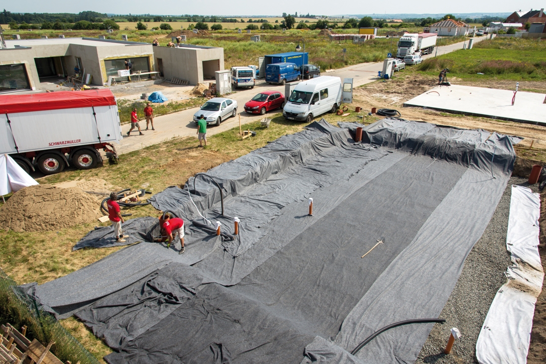 - Položí se netkaná geotextilie z kontiunálního vlákna o hmotnosti 150 g/m2