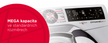 DYNAMIC MEGA zlepšuje účinnost praní. Kromě toho, že je v současnosti největší pračkou na trhu, nabízí technologii, díky které budete vyndavat z pračky méně pomačkané prádlo. To znamená méně času u žehlicího prkna. 13 kg kapacita praček je ideální i pro velké prádlo a objemné položky jako třeba peřiny.