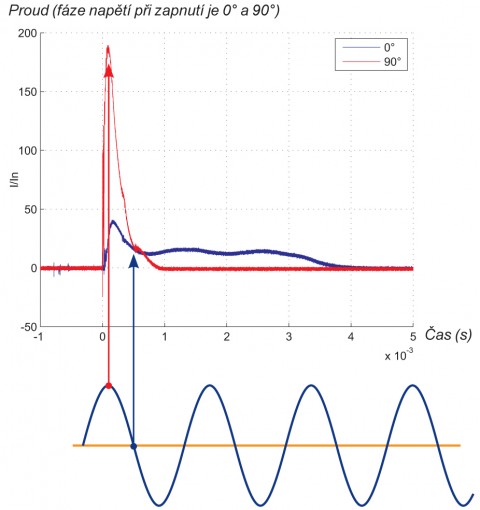 - Proudová špička při zapnutí