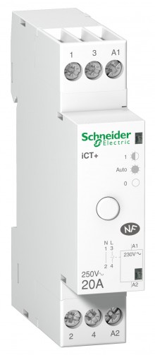 Jmenovitý proud hybridních stykačů CT+ je 20 A (zátěž 20 – 3600 W) s elektrickou životností 5 000 000 spínacích cyklů. Jeho rozměry odpovídají jednomu 18mm modulu. Hybridní impulzní relé pro ovládání osvětlení jsou k dispozici se jmenovitým proudem 16 A.