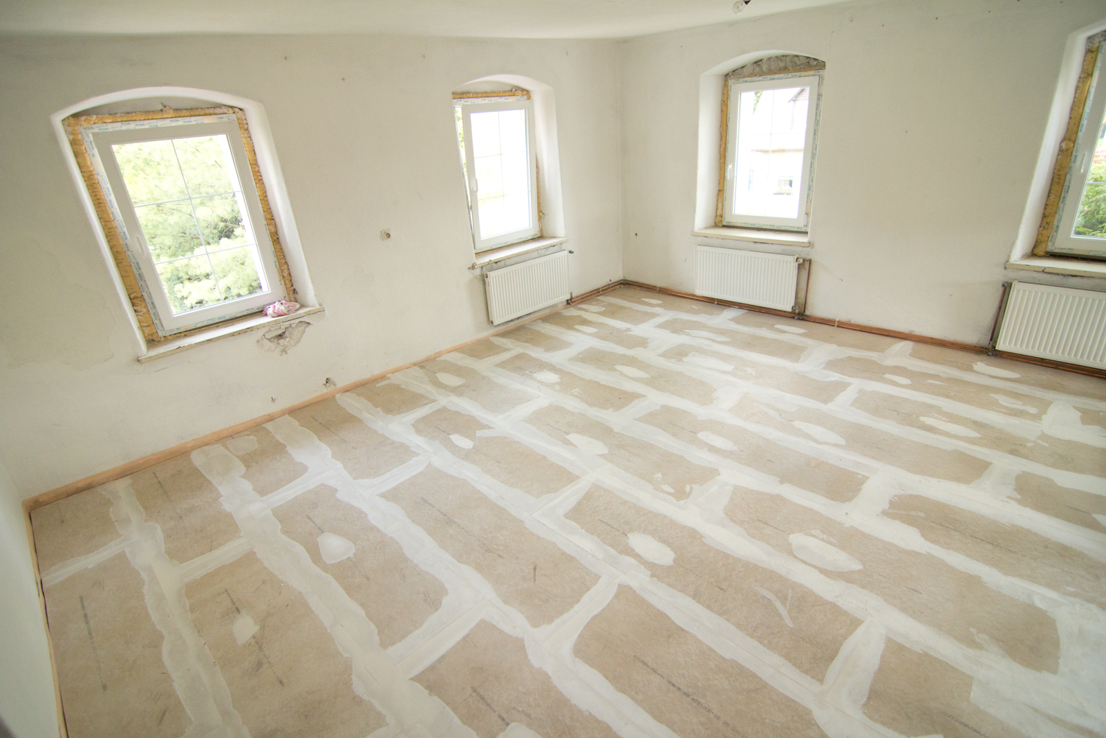03 Hotová suchá podlaha s vytmelenými spárami čeká na finální nášlapnou vrstvu