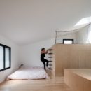 „Nechtěli jsme dělat nějaké architektonické gesto, chtěli jsme prostě skutečnou a smysluplnou odpověď na řešený problém,“ prozrazují architekti. Prostor, který vyplňují dřevěné boxy, zůstal i nadále nedělený a velmi vzdušný. Současně jsou tyto buňky nedílnou součástí organismu bytu.