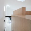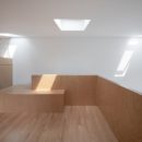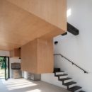 Jak asi tušíte, zasazovat cokoliv „do vzduchu“ je komplikované. A proto se architekti rozhodli pro vytvoření střední příčky pomocí dřevěných objektů. K jejich udržení ve vzduchu stačí jen pár podpůrných trámů. Na jejich základě pak vybudovali několik propojených boxů ze dřeva, které vyplnily požadovaný prostor.