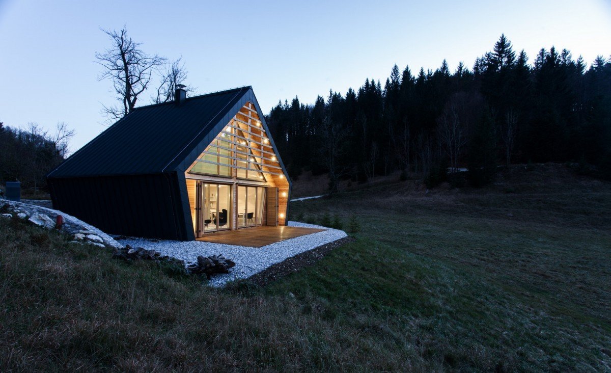 Neobyčejná prázdninová chatka na louce u lesa