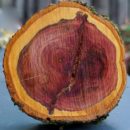 Běl je uzoučká, žlutá, někdy našedlá, jádro je nejčastěji narůžovělé, občas ale nabývá odstínů sytě červenohnědých. Zvláštností těchto stromů je, že pokud uschnou ve stoje, mají jádro vínově až mahagonově hnědé, někdy s plynulým přechodem do fialových odstínů. Takové dřevo je pak krásným materiálem na výrobu drobných předmětů či šperků, které opravdu zahřejí u srdce. Na jiné využití může být poněkud problematické, dřevo se totiž značně kroutí a praská. Musí se proto sušit zatížené a pomalu. Pak se ale dobře soustruží, řeže a leští.