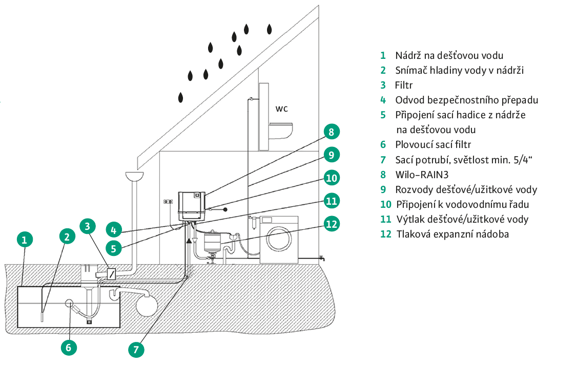 Součástí takto dodávaných systémů jsou i nové čerpadlové jednotky WILO-RAIN3 a WILO-RAIN1 určené pro rodinné domy a menší komerční budovy.