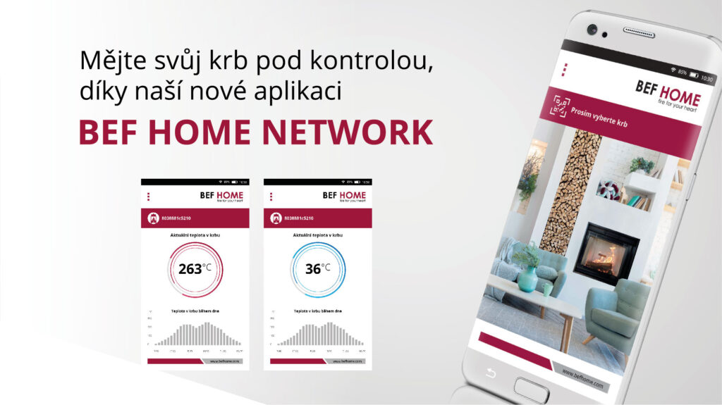 Krbová vložka v moderním domě musí být spojením emoce a rozumu. Na trh proto uvádíme řadu chytrého příslušenství BEF HOME NETWORK , které vám dává možnost ovládat a kontrolovat váš krb prostřednictvím mobilní aplikace. V tuto chvíli je pro zákazníky k dispozici wifi teploměr T-METER, který v reálném čase zobrazuje informaci o teplotě v krbu a notifikací vás upozorní na vyhasínání. Máte tak neustálý přehled o teplotě hoření a přikládáte jen tehdy, když je to opravdu potřeba a snižujete tak dále riziko přetopení interiéru, ale i celkovou spotřebu dřeva.