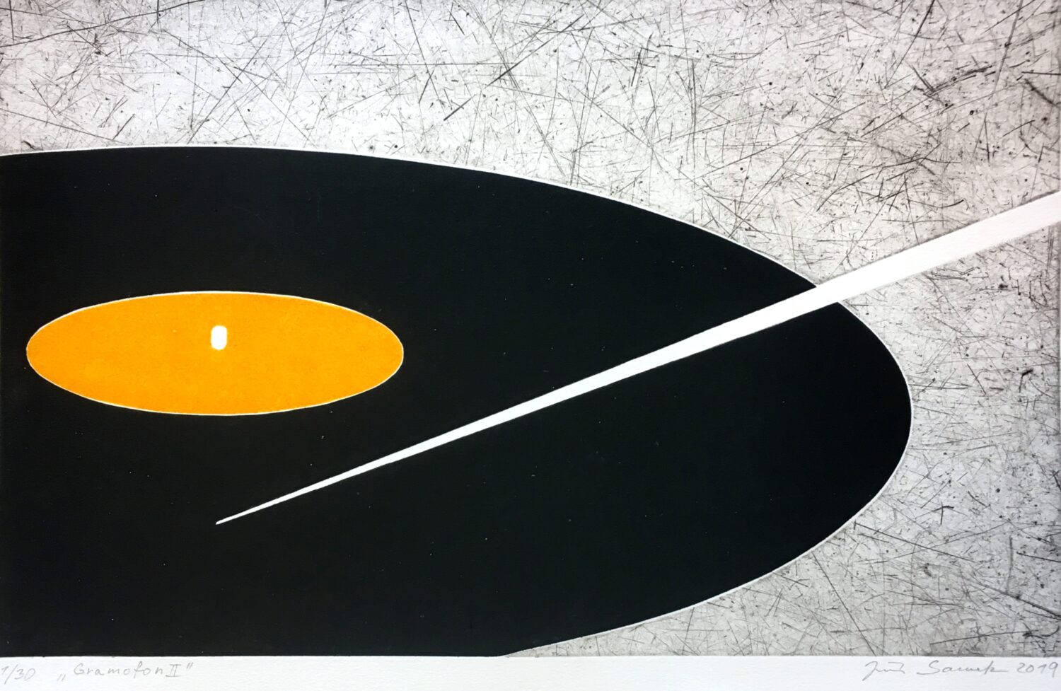 Jiří Samek, Gramofon II., 2019, hlubotisk z lina, DÚ Hudba v obrazech