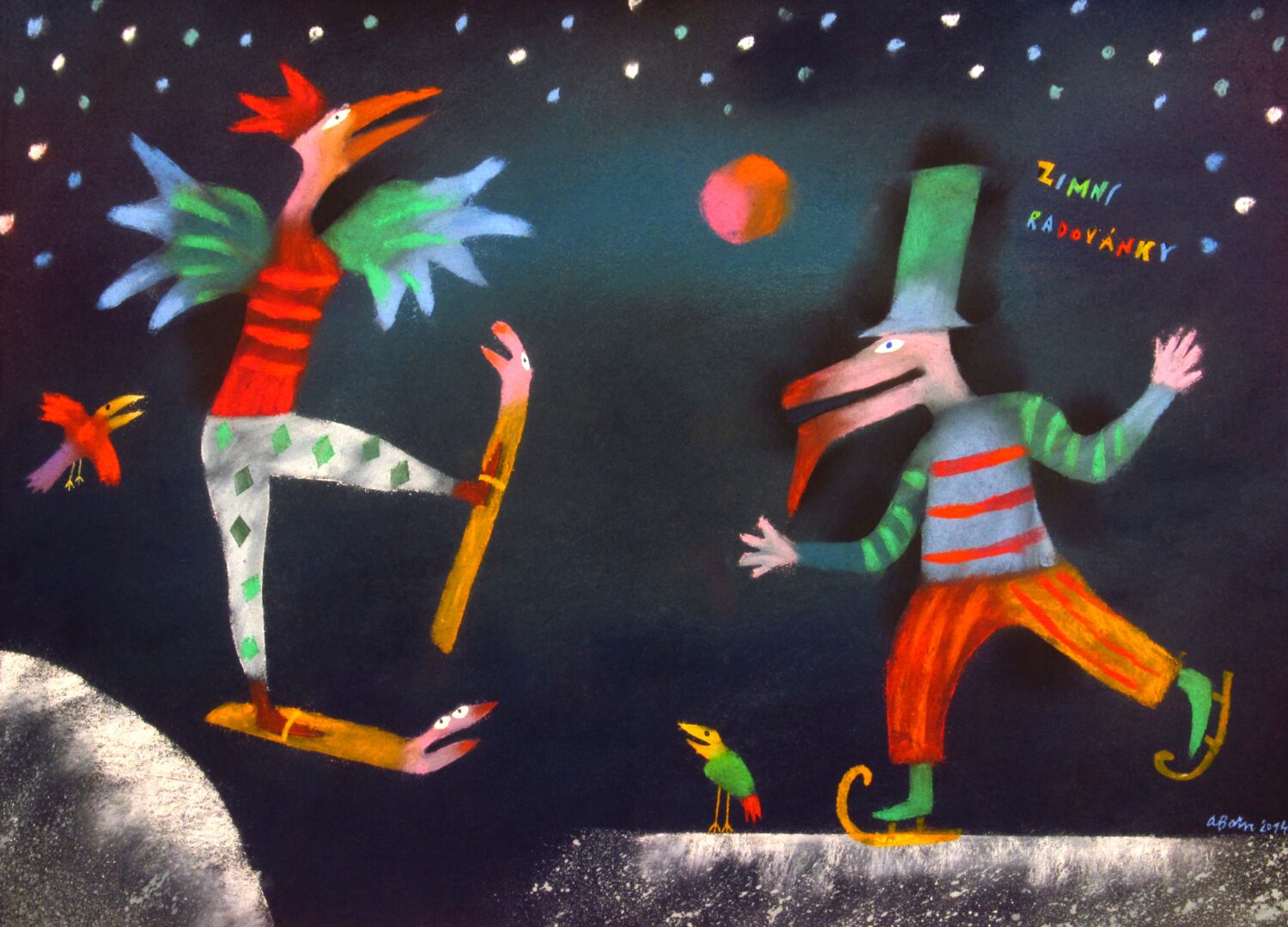 Adolf Born, Zimní radovánky (DÚ Zimní sporty), 2015, pastel